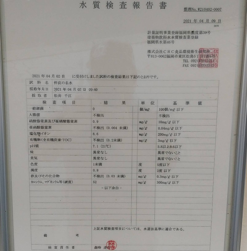 仲哀の山々は古くから金採掘や名水の場所として知られ、山々に降った雨水が地中深く浸透し、岩盤に蓄えられた硬度52の天然アルカリイオン水を汲み上げている。