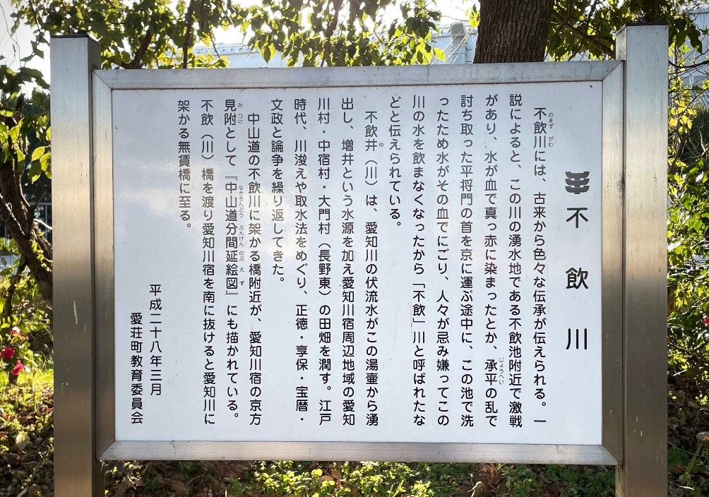 【不飲川湧水地】(滋賀県の水場)愛知郡愛荘町愛知川 平将門にまつわる恐ろしい伝承が残る 愛知川の伏流水が湧き出る湯壺 [名称] 不飲川湧水地(のまずがわゆうすいち) [場所] 滋賀県愛知郡愛荘町愛知川611 [言い伝え・概要] 諸説あるが、承平の乱で打ち取られた平将門の首を京に運ぶ途中にこの池で洗ったため水が濁り人々が忌み嫌って川の水を飲まなくなったことから「不飲」川と呼ばれたと伝えられている。 不飲川は、愛知川の伏流水がこの湯壺から湧出し、増井という水源を加え愛知川周辺地域の田畑を潤している。 [保全活動] [Google クチコミ] こちら お気に入りに追加※自然の湧水は煮沸して飲用されるとより安全です。※水辺は水難や危険生物に十分気を付けてください。 Click to share on X (新しいウィンドウで開きます) X このエントリーをLINEで送る (新しいウィンドウで開きます) LINEに送る Facebook で共有するにはクリックしてください (新しいウィンドウで開きます) Facebook このエントリーをはてなブックマークに追加 (新しいウィンドウで開きます) はてなブックマーク (人物)平将門 愛荘町 | 滋賀県 | 愛知郡 | 近畿 投稿日: 2026年1月23日2026年1月23日 投稿者: Sumai事務局