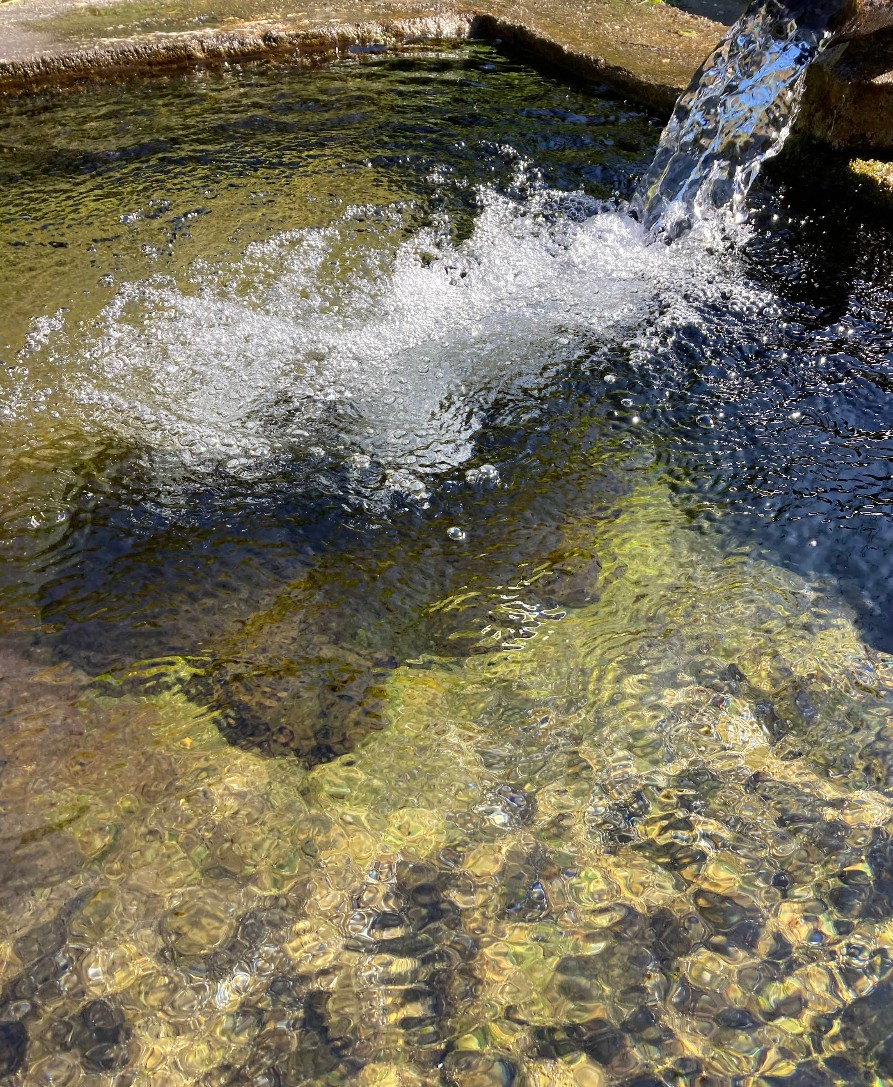湧き水は3段の水槽に注がれていて、野菜果物を冷やしたり、下段では洗い場などの用途で分けられているのだろうと思われる。
