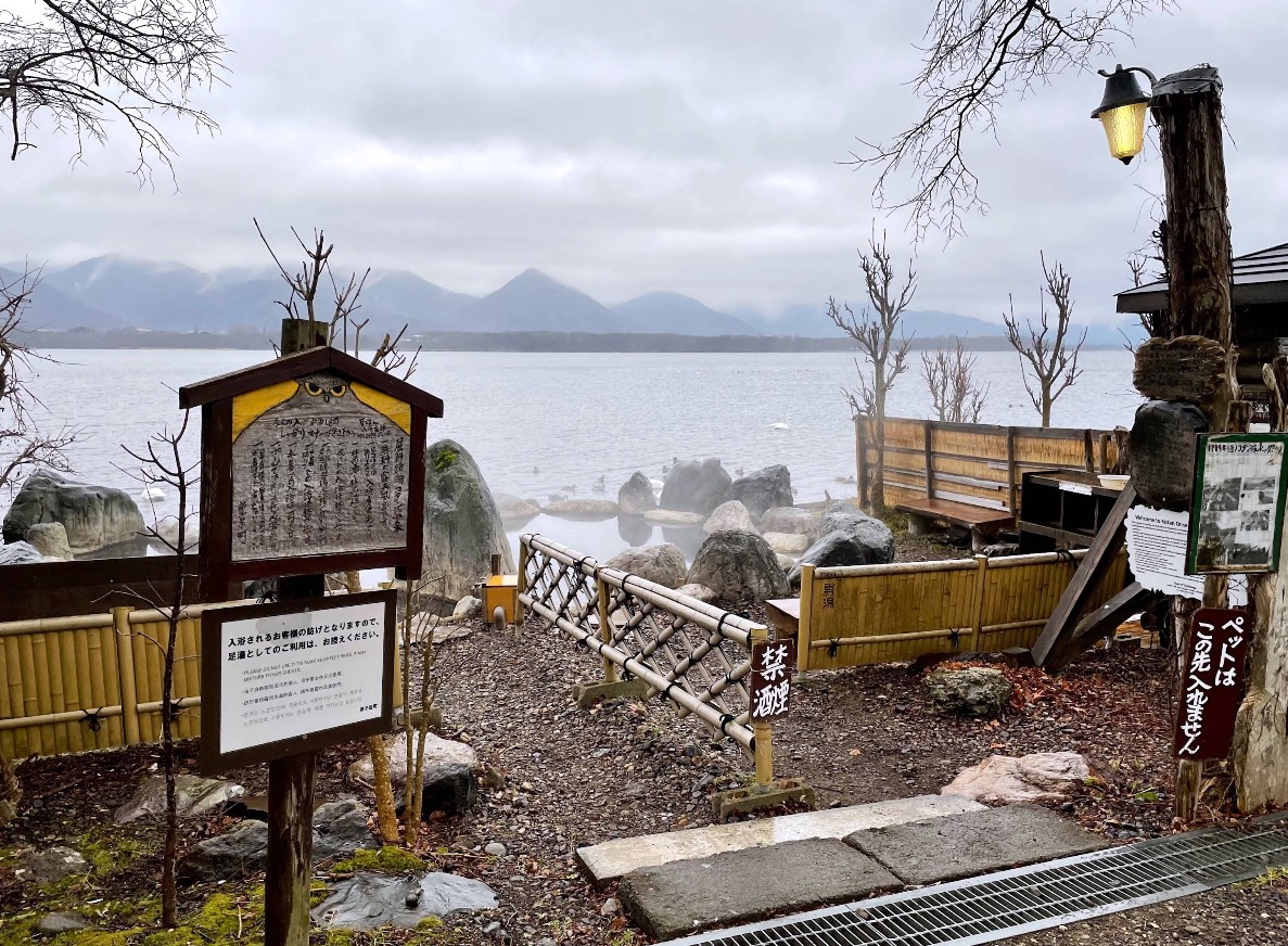[言い伝え・概要] 屈斜路湖の南側にある無料の露天風呂で、湖面すれすれに湯舟が設置されている。
