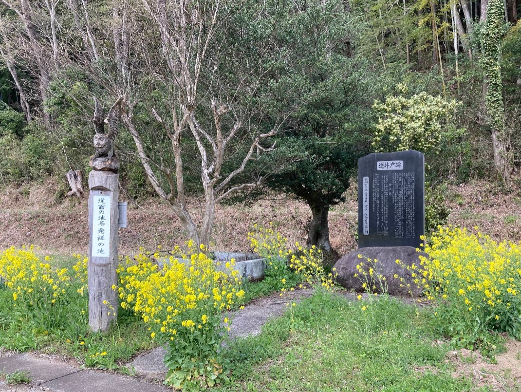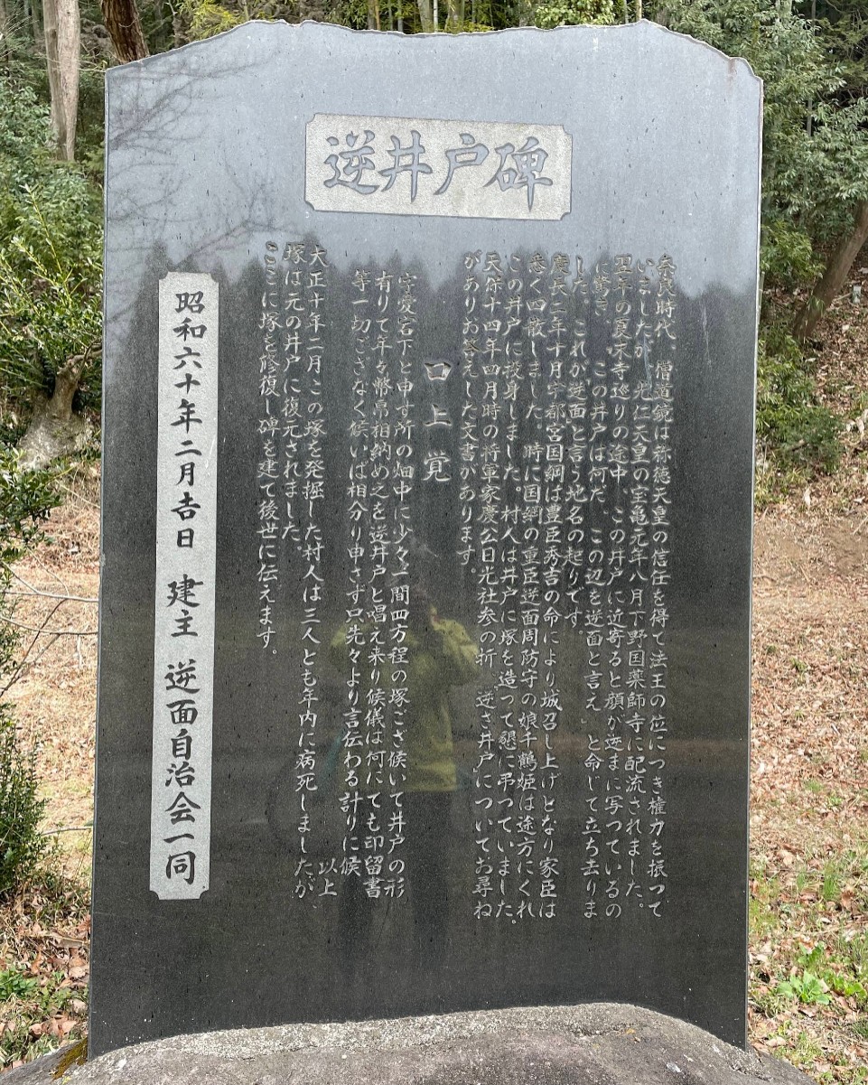 翌年の夏、末寺巡りの途中、この井戸に近寄ると顔が逆さに映っているのに驚き、「この井戸は何だ、この辺を逆面と言え」と命じ立ち去ったという。