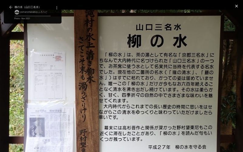 【柳の水】(山口県の湧水)山口市滝町 最後に残った山口三名水 六百年続く甘く柔らかい茶席の水