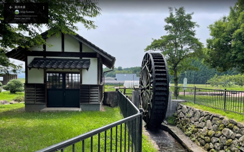 【前川水源】(熊本県の湧水)菊池市七城町亀尾 水車が回り噴水が上がる 風情ある前川公園の水場