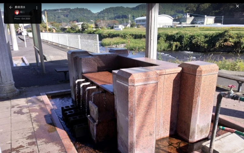 | [言い伝え・概要] | 長湯温泉街の入口にある桑畑湧水は、薄青いガラスでできた美しいオブジェが目印になっています。