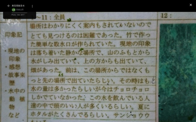 | [言い伝え・概要] | 竹林に囲まれた山道脇、竹で作られた取水口から湧き出る水。