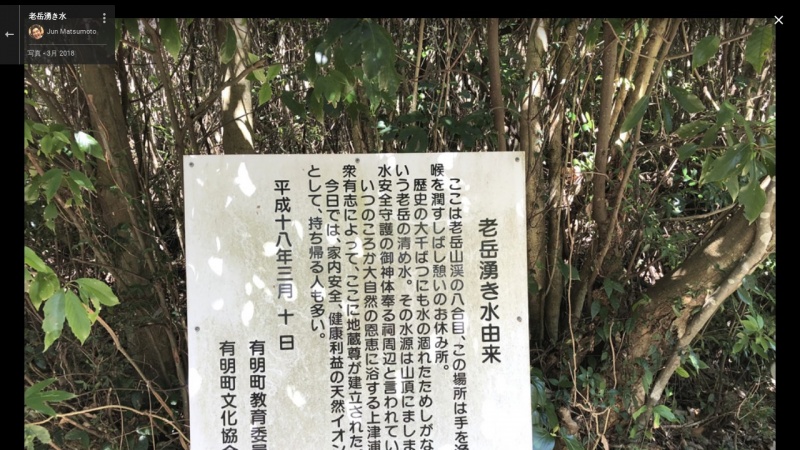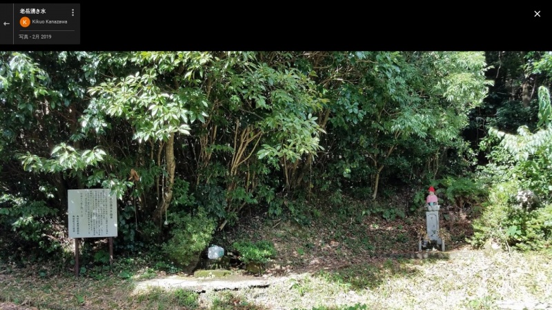 | [言い伝え・概要] | 歴史の大干ばつにも水の涸れたためしがないという老岳の清め水。その水源は山頂にまします風水安全守護の御神体奉る祠周辺と言われている。