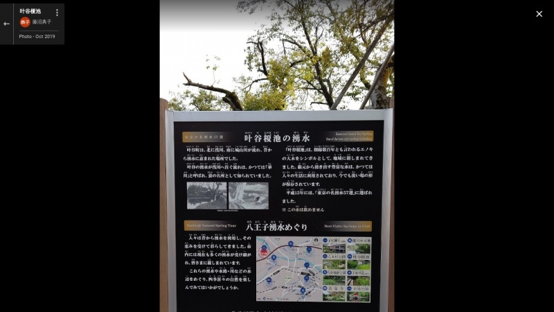 【叶谷榎池】(東京の名湧水57選)東京都八王子市叶谷町 樹齢数百年のエノキの大木の元から湧き出るかつての生活用水 [湧水の名称] 叶谷榎池(かのうやえのきいけ ) [場所] 東京都八王子市叶谷町 [言い伝え・概要] 樹齢数百年とも言われるエノキの大木がシンボルであり、豊富な湧水は、かつては人々の生活に利用され、今では当時の洗い場の形が残されている。東京の名湧水57選に選定。 [保全活動] 湧水量測定・「雨水浸透促進強化地区」を設定 [Google クチコミ] こちら 出典 環境省ホームページ お気に入りに追加※自然の湧水は煮沸して飲用されるとより安全です。※水辺は水難や危険生物に十分気を付けてください。 Click to share on X (新しいウィンドウで開きます) X このエントリーをLINEで送る (新しいウィンドウで開きます) LINEに送る Facebook で共有するにはクリックしてください (新しいウィンドウで開きます) Facebook このエントリーをはてなブックマークに追加 (新しいウィンドウで開きます) はてなブックマーク (名水・名勝)東京の名湧水57選 八王子市 投稿日: 2021年7月7日2021年7月7日 投稿者: Sumai事務局