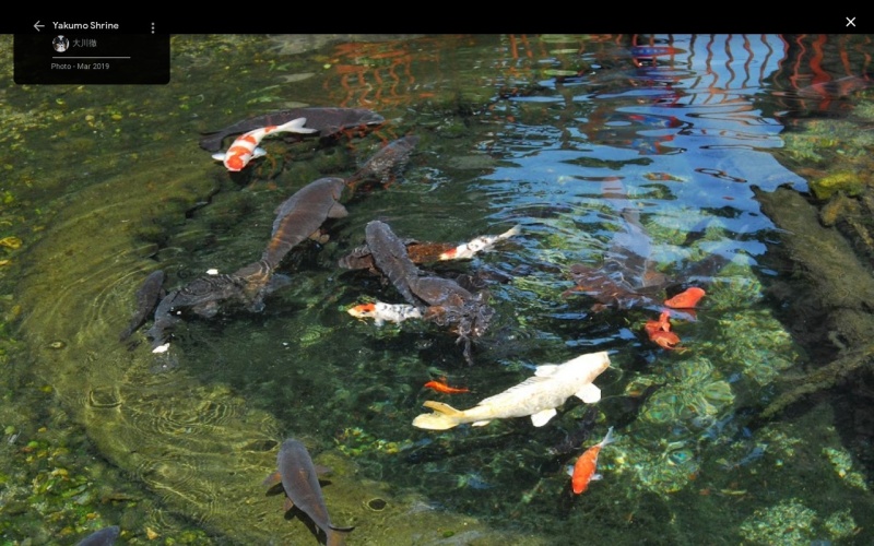 【八雲神社】(東京の名湧水57選)東京都あきる野市野辺 鯉の姿が透けて見える 透明で豊富な湧水池