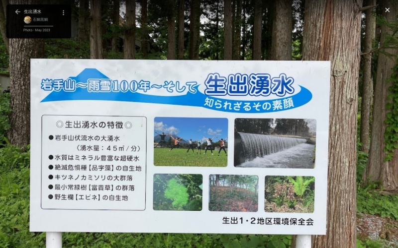 [言い伝え・概要] 生出湧水岩手山の伏流水で、古くから人々に利用されており、渋民・好摩地区等の水道の水源としても昭和40年台前半から活用されている。