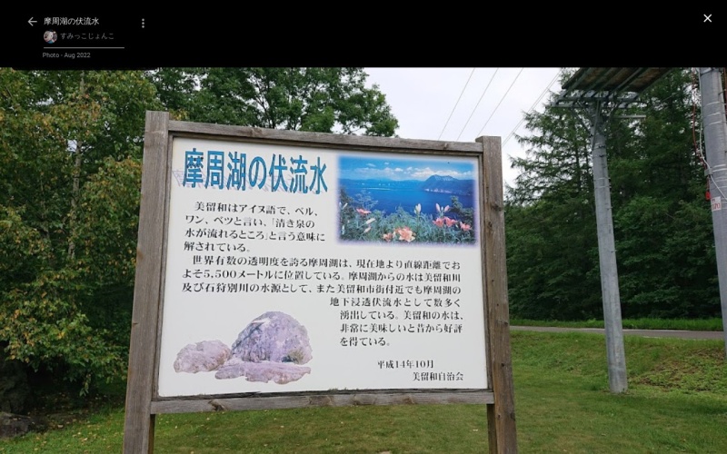 【摩周湖の伏流水】(北海道の湧水)川上郡弟子屈町美留和 世界有数の透明度を誇る 摩周湖の伏流水が湧き出る場所 [湧水の名称] 摩周湖の伏流水 [場所] 北海道川上郡弟子屈町美留和 [言い伝え・概要] 「清き泉の水が流れるところ」という意味のアイヌ語、「ベル、ワン、ベツ」が美留和という地名となったと言われている。 5,500m先の摩周湖から地下を浸透して湧き出る伏流水。 [保全活動] [Google クチコミ] こちら お気に入りに追加※自然の湧水は煮沸して飲用されるとより安全です。※水辺は水難や危険生物に十分気を付けてください。 Click to share on X (新しいウィンドウで開きます) X このエントリーをLINEで送る (新しいウィンドウで開きます) LINEに送る Facebook で共有するにはクリックしてください (新しいウィンドウで開きます) Facebook このエントリーをはてなブックマークに追加 (新しいウィンドウで開きます) はてなブックマーク (自然)摩周湖 | (種類)伏流水 北海道 | 弟子屈町 | 川上郡 投稿日: 2021年10月4日2023年6月19日 投稿者: Sumai事務局