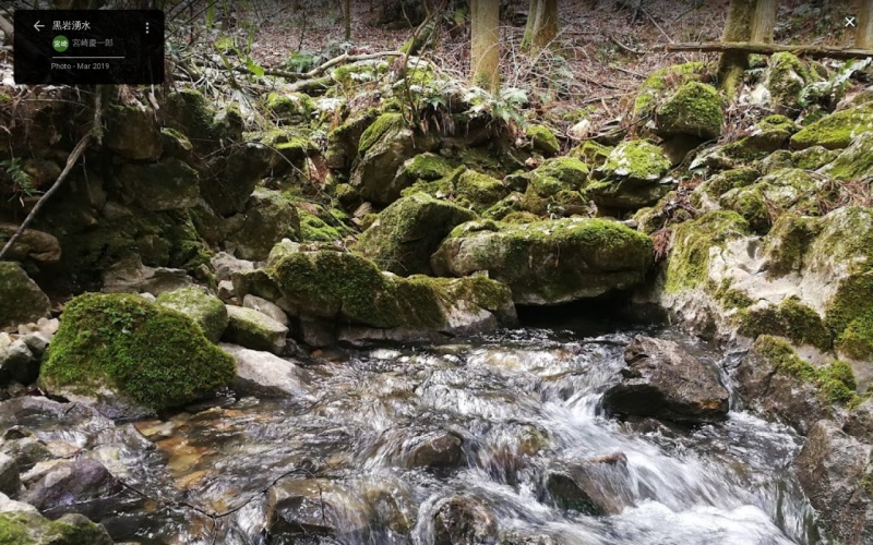 泉の湧出口は竪穴状になっており、その水深は40メートルに達する。 大雨の後には、すさまじい勢いで水が湧き出す。 黒岩川には、甌穴、ノッチなどさまざまな溶食形態が見られ、清流の魚と戯れることができる。 |
