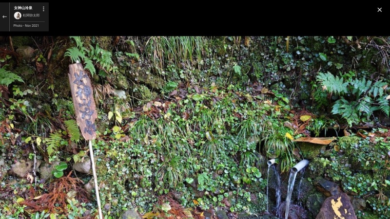 [言い伝え・概要] 女神山や男神山山頂より北西へ7km程、平山の滝より北西へ500m程の県道181号線脇にある湧水。
