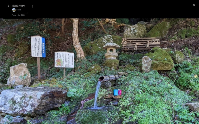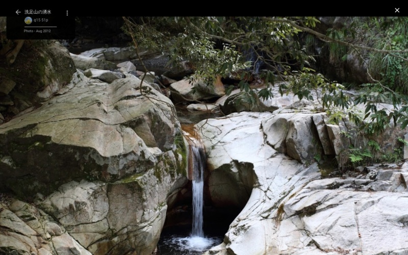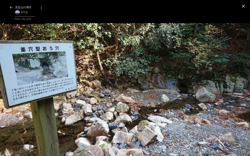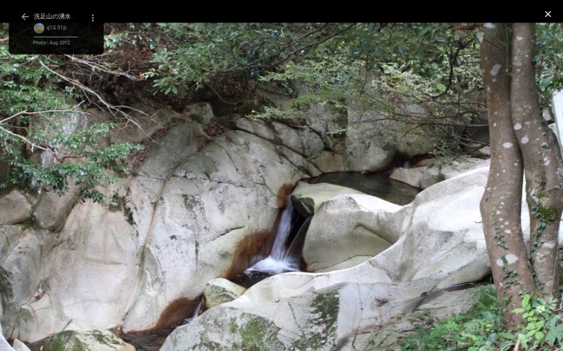 【洗足山の湧水】(鳥取県の湧水)鳥取市用瀬町赤波 マタタビの薬効があるという おう穴群の花崗岩から湧き出る延命水