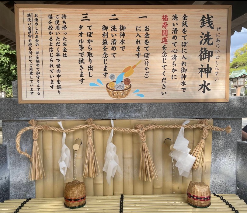 御祭神 応神天皇(おうじんてんのう) 八幡大神 銭洗御神水 金銭をてぼに入れ御神水で洗い清めて心清らかに福寿開運を念じます。持ち帰ったお金はご使用いただく事で世の中を巡り福を授かると信じられています。 筥崎宮の正面手水舎の一角に銭洗御神水をご用意しております。 また、銭洗にあやかった銭洗金運勝守はお守り授与所にてお受けいただけます。 (公式サイトより引用) |