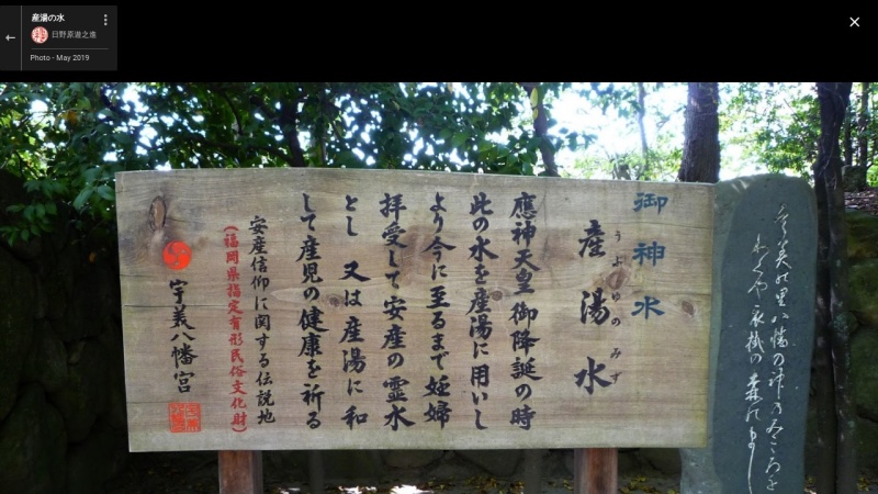 | [言い伝え・概要] | 安産の神として有名な宇美八幡宮の境内にある、応神天皇の産湯に用いられたという伝説の霊水。