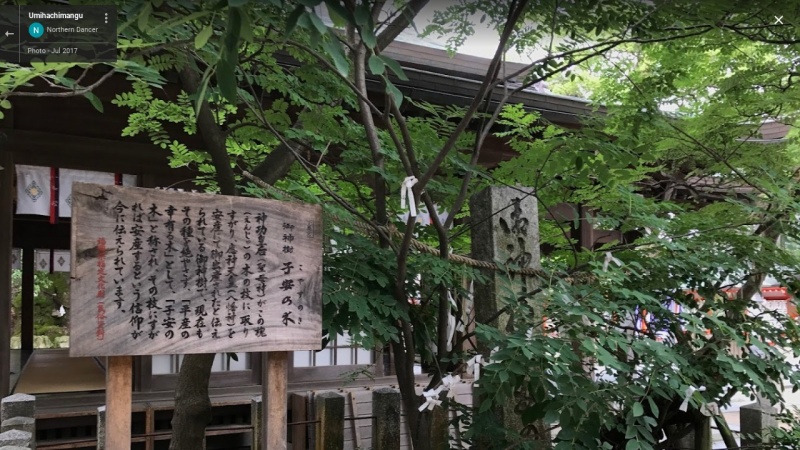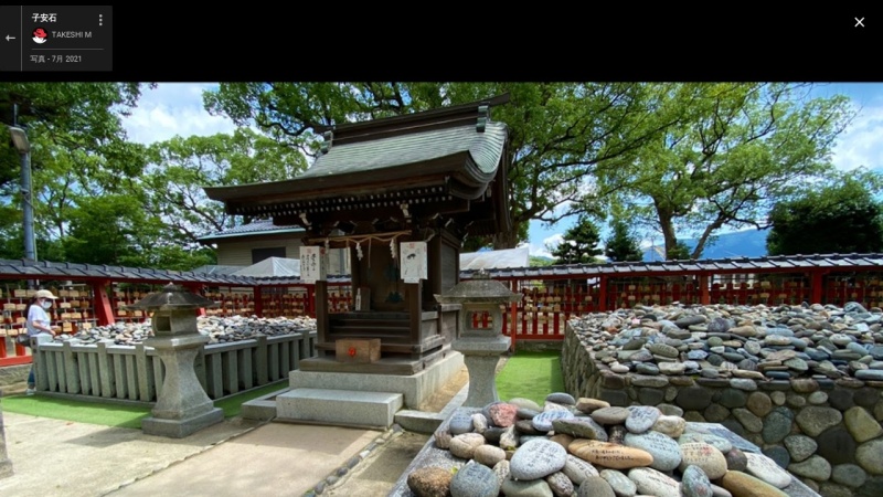 他にも、神功皇后が応神天皇を出産する際に取りすがったとされる「子安の木」、安産の祈りが書き込められた「子安の石」※1 が積まれた場所もある。 ※1 安産祈願を終えた妊婦が“お産の鎮め”として此処の石を預かって持ち帰り、目出度くご出産の暁には、別の新しい石にお子様の名前等を記して健やかなる成長を願い、安産御礼(初宮詣)の御祈願にてお祓いの後に、預かった石と一緒お納めするのが慣しとなっています。