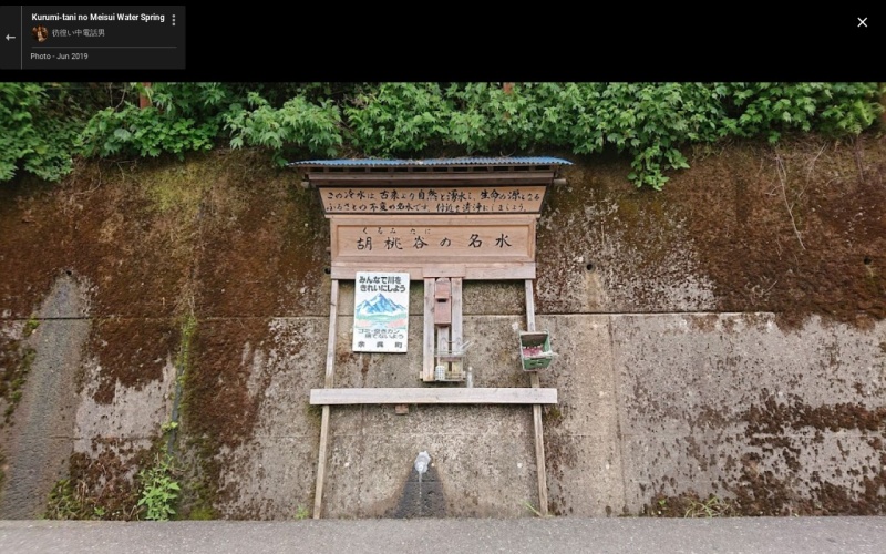 【胡桃谷の名水】(滋賀県の湧水)長浜市余呉町菅並 谷川沿いの県道脇で湧き出る密かな名水 [湧水の名称] 胡桃谷の名水(くるみたにのめいすい) [場所] 滋賀県長浜市余呉町菅並 [言い伝え・概要] 古来より自然に湧水し、生命の源となるふるさとの名水。 高時川沿い県道脇の擁壁から湧き出ている軟水。 取水口に差し込まれたペットボトルとガーゼ等で濾過されている。 [保全活動] [Google クチコミ] こちら お気に入りに追加※自然の湧水は煮沸して飲用されるとより安全です。※水辺は水難や危険生物に十分気を付けてください。 Click to share on X (新しいウィンドウで開きます) X このエントリーをLINEで送る (新しいウィンドウで開きます) LINEに送る Facebook で共有するにはクリックしてください (新しいウィンドウで開きます) Facebook このエントリーをはてなブックマークに追加 (新しいウィンドウで開きます) はてなブックマーク (種類)軟水 滋賀県 | 近畿 | 長浜市 投稿日: 2022年4月25日2022年4月25日 投稿者: Sumai事務局