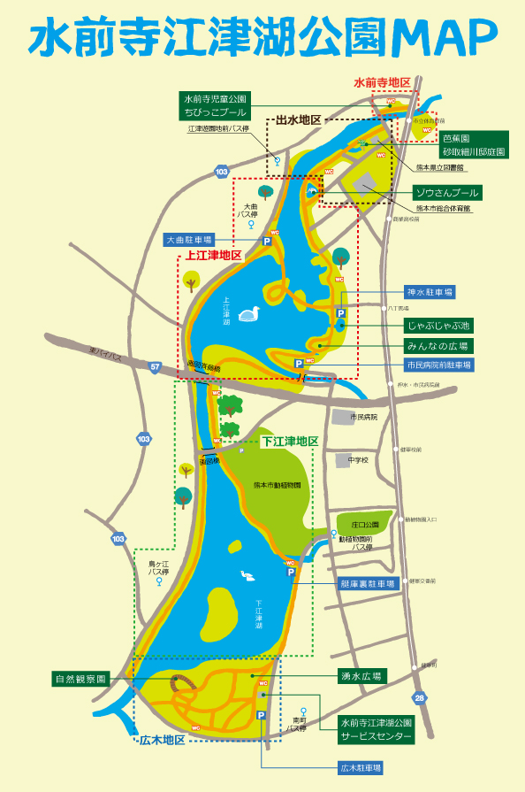 | [湧水の名称] | 水前寺江津湖公園(すいぜんじえづここうえん) |