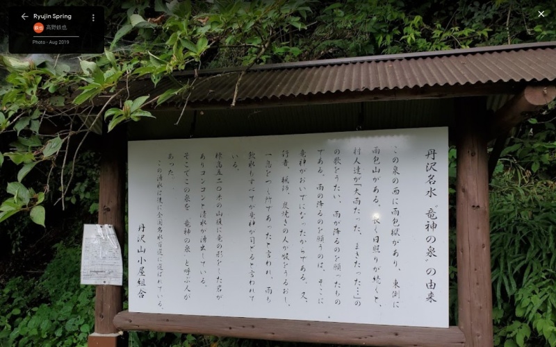 【竜神の泉】(神奈川県の湧水)秦野市戸川 雨乞いの竜神伝説がある丹沢名水 [湧水の名称] 竜神の泉(りゅうじんのいずみ) [場所] 神奈川県秦野市戸川 [言い伝え・概要] 山腹に竜の形をした岩があることから、水をつかさどる“竜神”が宿ると伝えられる場所。昔から行者や猟師などが喉を潤し、ひと息ついた泉として知られています。 【案内】渋沢駅より大倉行きバス、大倉下車、徒歩45分 [保全活動] 年に2回飲料水質検査を実施 [Google クチコミ] こちら 出典 環境省ホームページ お気に入りに追加※自然の湧水は煮沸して飲用されるとより安全です。※水辺は水難や危険生物に十分気を付けてください。 Click to share on X (新しいウィンドウで開きます) X このエントリーをLINEで送る (新しいウィンドウで開きます) LINEに送る Facebook で共有するにはクリックしてください (新しいウィンドウで開きます) Facebook このエントリーをはてなブックマークに追加 (新しいウィンドウで開きます) はてなブックマーク (ご利益別)雨乞い | (パワースポット)龍神 関東 | 神奈川県 | 秦野市 投稿日: 2021年3月7日2023年6月20日 投稿者: Sumai事務局