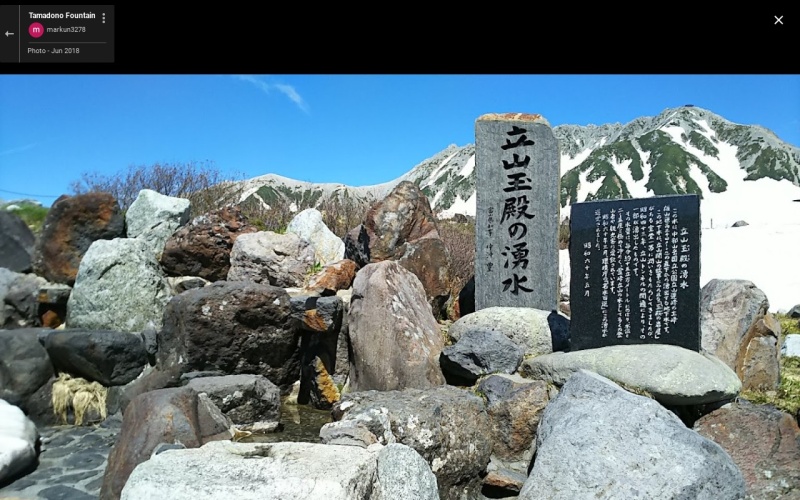 【立山玉殿の湧水】(富山県の湧水・日本の名水百選)中新川郡立山町芦峅寺 霊峰立山標高2450mの冷んやりした地下水 [湧水の名称] 立山玉殿の湧水(たてやまたまどののゆうすい) [場所] 富山県中新川郡立山町芦峅寺 [言い伝え・概要] 立山黒部アルペンルートの立山トンネルの開通により、標高2450mの室堂に豊富な湧水が噴出し、冷たく豊富な水は、霊峰立山の水として、登山客や観光客ののどを潤している。 硬度17mg/Lの軟水で、有機物が非常に少ない清らかな水。 立山玉殿の湧水紹介ページ [保全活動] 年1回水質調査を行っている。 [Google クチコミ] こちら 出典 環境省ホームページ お気に入りに追加※自然の湧水は煮沸して飲用されるとより安全です。※水辺は水難や危険生物に十分気を付けてください。 Click to share on X (新しいウィンドウで開きます) X このエントリーをLINEで送る (新しいウィンドウで開きます) LINEに送る Facebook で共有するにはクリックしてください (新しいウィンドウで開きます) Facebook このエントリーをはてなブックマークに追加 (新しいウィンドウで開きます) はてなブックマーク (種類)軟水 | (名水・名勝)昭和の名水百選 | (名水・名勝)日本の名水百選 中新川郡 | 立山町 | 富山県 投稿日: 2021年3月7日2023年8月8日 投稿者: Sumai事務局