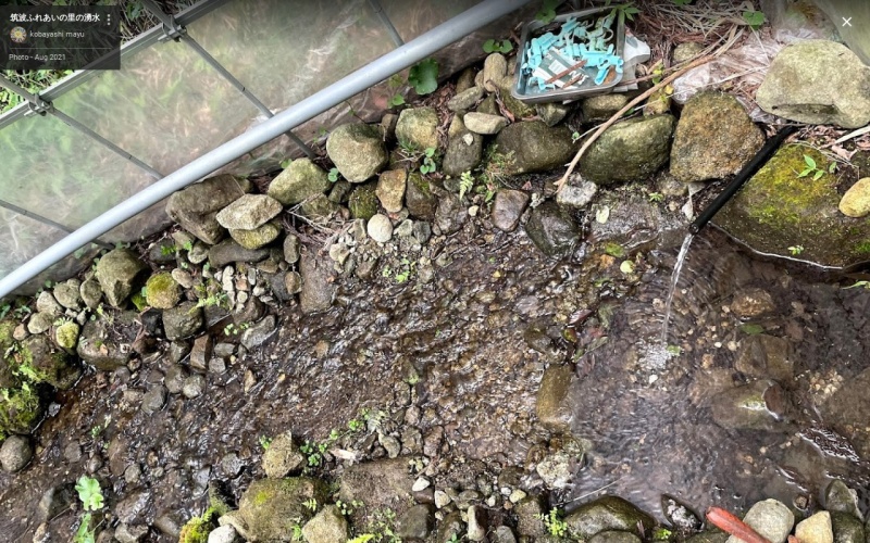 【筑波ふれあいの里の湧水】(茨城県の湧水)つくば市臼井 キャンプ場・BBQ場を併設した 自然活用型施設の林で湧き出る山水