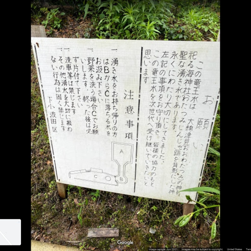 【竜王水】(三重県の湧水)名張市下小波田 野菜洗い場もある 市内で唯一の地下水が湧く神聖な場所 [湧水の名称] 竜王水 [場所] 三重県名張市下小波田 [言い伝え・概要] 大綿津見(おおわたつみ)の神を祀る海神社(わたつみじんじゃ)跡を背景にした神聖な湧き水。 名張市で唯一、地下水が湧き出している場所。 水温は年間通じて15℃、湧く水量は1時間3.4㎥(トン)。 (現地掲示板より) [保全活動] [Google クチコミ] こちら お気に入りに追加※自然の湧水は煮沸して飲用されるとより安全です。※水辺は水難や危険生物に十分気を付けてください。 Click to share on X (新しいウィンドウで開きます) X このエントリーをLINEで送る (新しいウィンドウで開きます) LINEに送る Facebook で共有するにはクリックしてください (新しいウィンドウで開きます) Facebook このエントリーをはてなブックマークに追加 (新しいウィンドウで開きます) はてなブックマーク (場所)洗い場 三重県 | 名張市 投稿日: 2022年5月19日2023年3月17日 投稿者: Sumai事務局