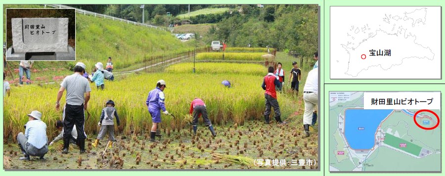 | [保全活動] | 施設は、地域の貴重な生物の生活空間を守るため、ため池や水路、水田などを活かして整備されており、地元住民と水資源機構により管理されている。 |