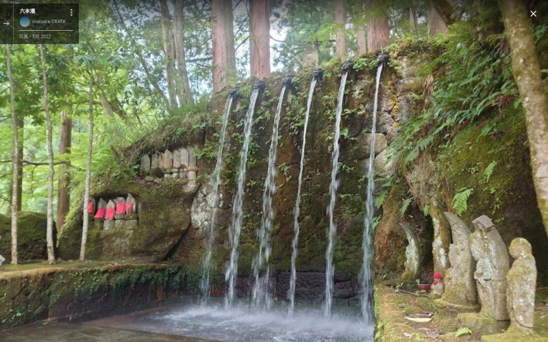 明治元年建設、高さ十八尺、六基の龍頭より流れ出る水は立山の麓より湧き出ています。 この瀧にうたれるという事は灌頂(かんじょう)を受ける(佛様とのご縁を結ぶ)事であり人間の六根(眼根、耳根、鼻根、舌根、身根、意根)を清浄にし、三世諸佛に帰依奉り明王の大慈悲の法水を受け一切衆生の六欲根本煩悩を断ずる事にある。 合掌 (現地掲示板より)