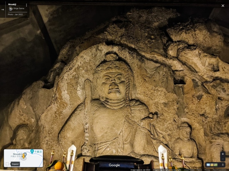 大岩山日石寺は真言密宗の大本山として知られ、行基菩薩が大岩川の岩に不動明王を刻んだことが起源と伝えられています。 高さ 3.46mの本尊不動明王像のほか四体が凝灰岩の巨岩に半肉彫りで彫り出され、中部地方の最高傑作として高い評価を受けており国指定重要文化財となっています。 毎年1月の大寒には境内の六本滝で白衣をまとった信者が滝打ちの業を行います。 また、毎年7月1日には、健康と修行の安全、地域の商売繁盛を願って滝開きが行われます。