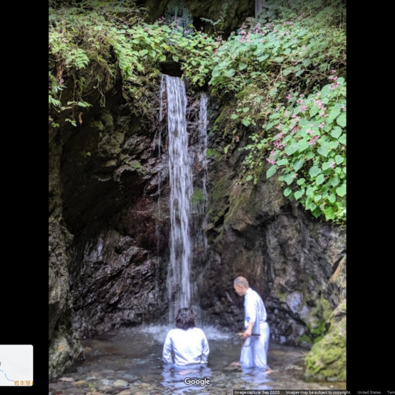 大悲の滝では、奥之院の鍾乳洞の中の湧き水が直接落ちている。高さは8mあり、岩場の上には不動明王など3体が安置されている。 一人5000円で滝行が可能(要予約) |