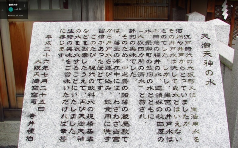 | [名称] | 天満天神の水(てんまんてんじんのみず) |
