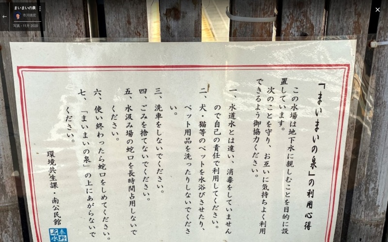 【まいまいの泉】(神奈川県の湧水)秦野市今泉 かたつむりの形をした井戸から自噴する中軟水 [名称] まいまいの泉 [場所] 神奈川県秦野市今泉598 [言い伝え・概要] この泉は、その見た目と上古に造られた井戸である『まいまいず井戸』にちなんで命名された。 地下水質の改善が進み、飲用に適する水質に達したため、地下水の監視用に掘られた井戸を利用して、地下20m から地下水を自噴させている。 硬度94mg/Lの中軟水。 [保全活動] [Google クチコミ] こちら 出典 秦野名水まっぷ お気に入りに追加※自然の湧水は煮沸して飲用されるとより安全です。※水辺は水難や危険生物に十分気を付けてください。 Click to share on X (新しいウィンドウで開きます) X このエントリーをLINEで送る (新しいウィンドウで開きます) LINEに送る Facebook で共有するにはクリックしてください (新しいウィンドウで開きます) Facebook このエントリーをはてなブックマークに追加 (新しいウィンドウで開きます) はてなブックマーク 関東 | 神奈川県 | 秦野市 投稿日: 2022年9月21日 投稿者: Sumai事務局