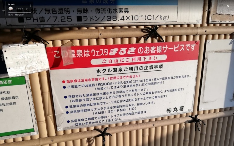 ●温泉泉摂取はウェスタまるき営業時間のみでお願いします。(AM9:30~PM8:00)
