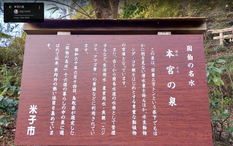 【本宮の泉】(鳥取県の湧水)米子市淀江町本宮 類まれな湧水量1日3万トンを誇る 透き通った因伯の名水