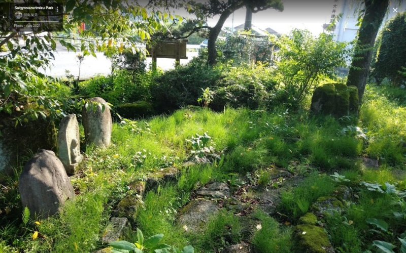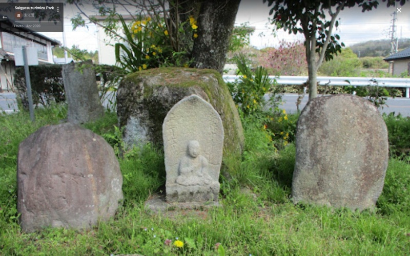[言い伝え・概要] 文治二年(1486)西行は二度目の奥州の旅に伊勢を出発した。鎌倉で源頼朝に会い、平泉で一年滞在した後、木曽路を経てこの地を訪れ、三年間暮らしたといわれる。歌人である西行は、多くの歌を詠み、こんこんとわき出るこの泉の水を汲んで、墨をすったと伝えられている。