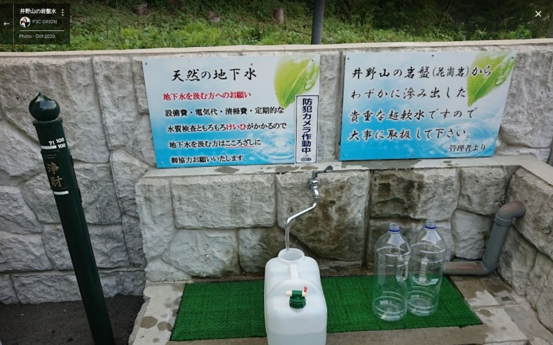 【井野山の岩盤水】(福岡県の水汲み場)糟屋郡宇美町井野 井野山の岩盤から僅かに滲み出した アルカリ超軟水の天然地下水 [名称] 井野山の岩盤水 [場所] 福岡県糟屋郡宇美町井野595 [言い伝え・概要] 井野山の岩盤(花崗岩)からわずかに滲み出した貴重な超軟水。 水汲みには志を入れてください。 日蔭の常温で2週間大丈夫との事。 [保全活動] [Google クチコミ] こちら お気に入りに追加※自然の湧水は煮沸して飲用されるとより安全です。※水辺は水難や危険生物に十分気を付けてください。 Click to share on X (新しいウィンドウで開きます) X このエントリーをLINEで送る (新しいウィンドウで開きます) LINEに送る Facebook で共有するにはクリックしてください (新しいウィンドウで開きます) Facebook このエントリーをはてなブックマークに追加 (新しいウィンドウで開きます) はてなブックマーク (種類)超軟水 福岡県 | 宇美町 | 九州 | 糟屋郡 投稿日: 2022年11月23日 投稿者: Sumai事務局