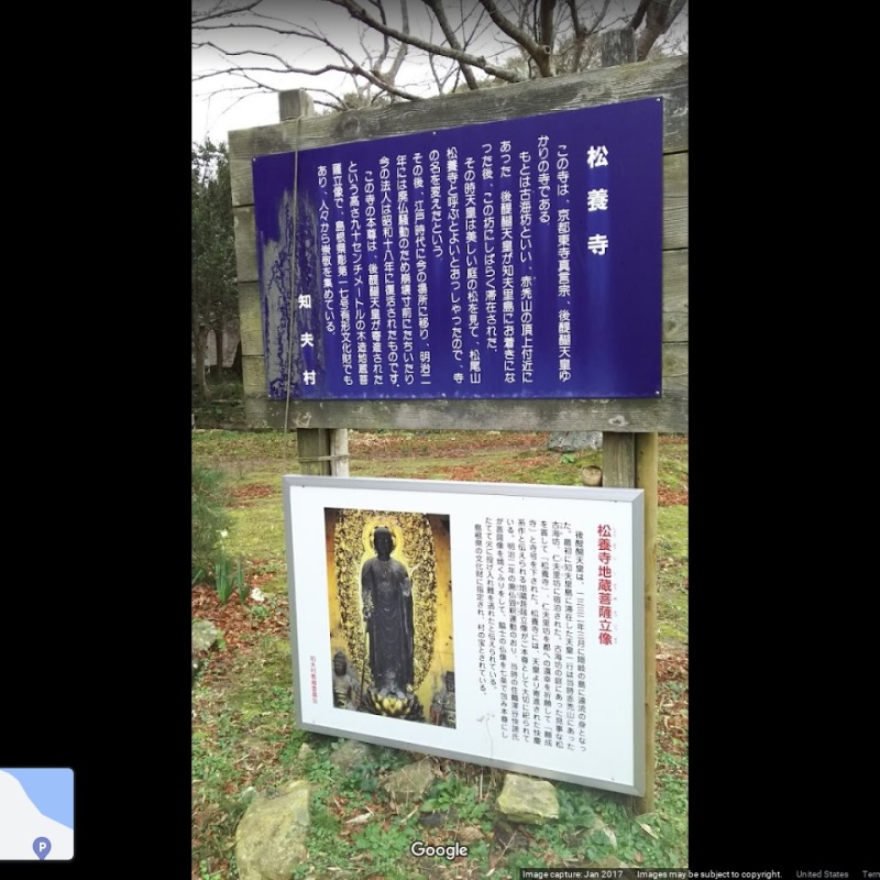 [言い伝え・概要] 後醍醐天皇が元弘二年(1332)隠岐に配流の際に一時滞在されたという※松尾山松養寺の麓にある湧水。