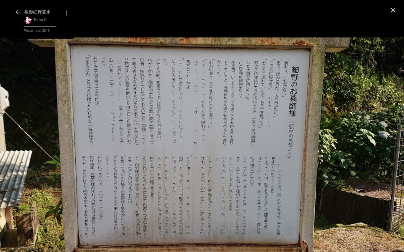 この時、湧水を「桜形細野霊水」と名付けた。 それ以降、農地の保有者で祀り、管理している。 |