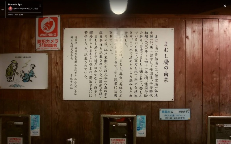 まむしの湯は、湯治場として歴史が古く、弘法大師(空海)がまむしに咬まれ苦しんでいる人々をみて この地に水を出したと伝えられ、福岡県史にも「温泉 吉井温湯」と記載されている。 古文書、郷土史には まむし、毒虫(ムカデなど)、ハゼマケ、バリ、毒クラゲの毒消しの「湯治場」として利用され、まむしに咬まれた人は遠くからこの地を訪れ一週間程度で治って帰ることができたという水。 深さ300mの地下から汲み上げ、水温21~23℃、メタケイ酸35.7mg/kg、PH7.8のアルカリ天然水。 10L 100円 (24時間) |