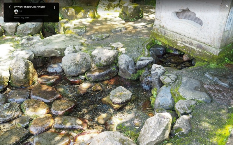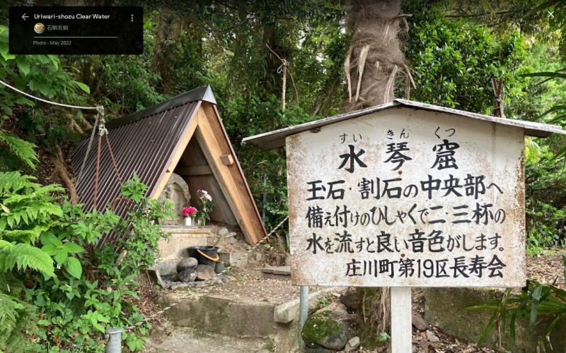 瓜を冷やしたところあまりの冷たさに自然に裂けた事から名前がついた。 近くの木陰に水琴窟があり、水を汲んで落とすと綺麗な水の反響を聞く事ができる。 |