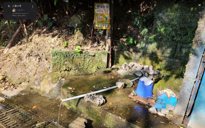 | [言い伝え・概要] | 八重山公園、キャンプ場や家族風呂・露天風呂などがある温泉近くの山道脇で不規則に湧き出ている。