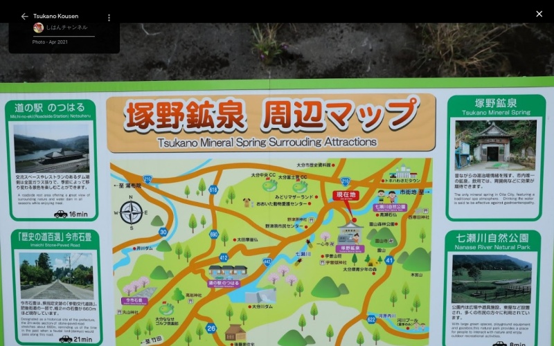 | [言い伝え・概要] | 塚野鉱泉の泉質は含二酸化炭素・ナトリウム・炭酸水素塩泉で、飲用・浴用ともに利用され、特に飲用では高濃度の炭酸水素イオンと二酸化炭素の成分が胃腸病、慢性便秘に効能があることで知られている。
