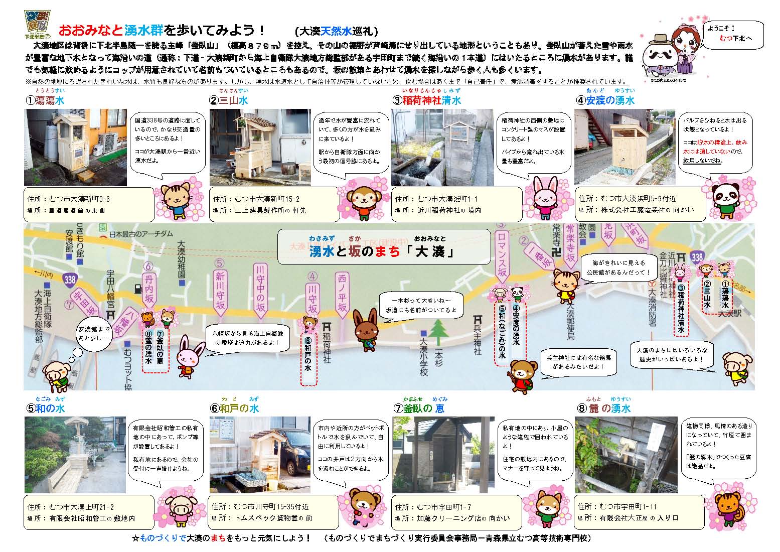 大湊地区には釜臥山(かまふせやま・標高879m)が蓄えた豊富な地下水が海沿いに湧き出ている。