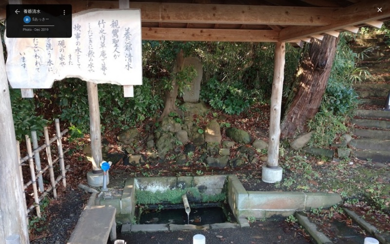 【養爺清水】(新潟県の湧水)上越市五智 親鸞聖人が竹之内草庵で使った生活用水 [湧水の名称] 養爺清水(ようやしみず) [場所] 新潟県上越市五智3丁目20 [言い伝え・概要] 新潟県の名水に選定されている。 親鸞聖人もこの清水を飲み、食事や墨をするのに使用したといわれている。 [保全活動] 五智国分寺や地域住民による環境整備 [Google クチコミ] 出典 環境省ホームページ お気に入りに追加※自然の湧水は煮沸して飲用されるとより安全です。※水辺は水難や危険生物に十分気を付けてください。 Click to share on X (新しいウィンドウで開きます) X このエントリーをLINEで送る (新しいウィンドウで開きます) LINEに送る Facebook で共有するにはクリックしてください (新しいウィンドウで開きます) Facebook このエントリーをはてなブックマークに追加 (新しいウィンドウで開きます) はてなブックマーク (人物)親鸞聖人 新潟県 | 上越市 | 中部 投稿日: 2021年3月14日2023年6月20日 投稿者: Sumai事務局