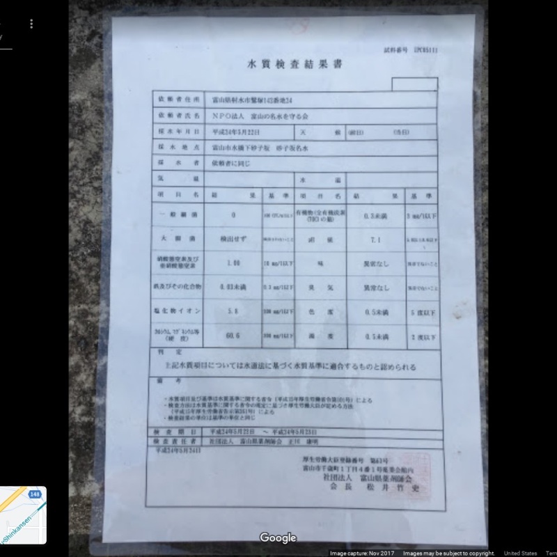 【砂子坂の名水】(富山県の水汲み場)富山市水橋下砂子坂 広い駐車場脇で太いパイプから勢いよく湧き出ている水汲み場 [名称] 砂子坂の名水(すなごさかのめいすい) [場所] 富山県富山市水橋下砂子坂 [言い伝え・概要] 県道151線沿いの広い駐車場脇にある水汲み場。 水量が豊富で、石の中に埋め込まれた太いパイプから勢いよく流れ出ている。 駐車場の反対側には、ラーメン店・とんかつ店の店舗があって、食事の後に汲んで帰る人々が多い。 [保全活動] [Google クチコミ] こちら お気に入りに追加※自然の湧水は煮沸して飲用されるとより安全です。※水辺は水難や危険生物に十分気を付けてください。 Click to share on X (新しいウィンドウで開きます) X このエントリーをLINEで送る (新しいウィンドウで開きます) LINEに送る Facebook で共有するにはクリックしてください (新しいウィンドウで開きます) Facebook このエントリーをはてなブックマークに追加 (新しいウィンドウで開きます) はてなブックマーク 中部 | 富山県 | 富山市 投稿日: 2023年5月7日2023年5月7日 投稿者: Sumai事務局