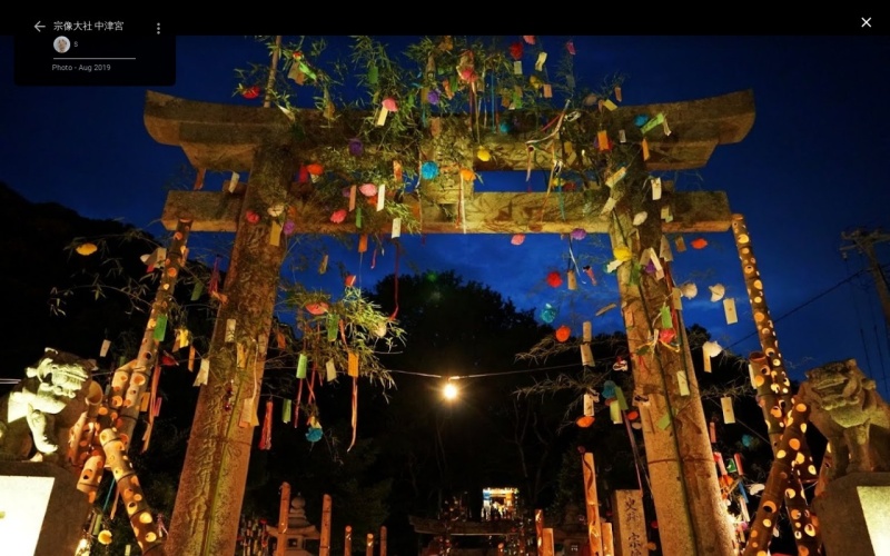 毎年8月7日には「大島七夕祭」が行われ、ターミナルから中津宮へと続く道は吹き流しや笹竹で装飾されて、夜には竹灯籠が灯る。