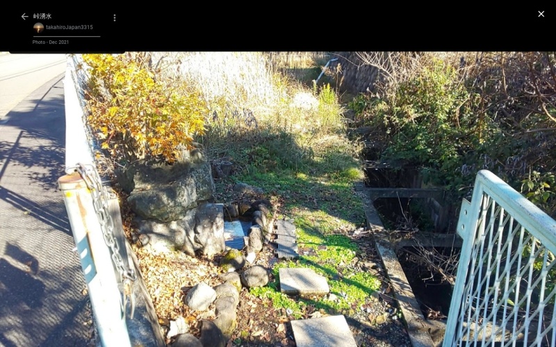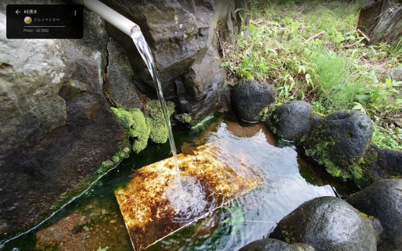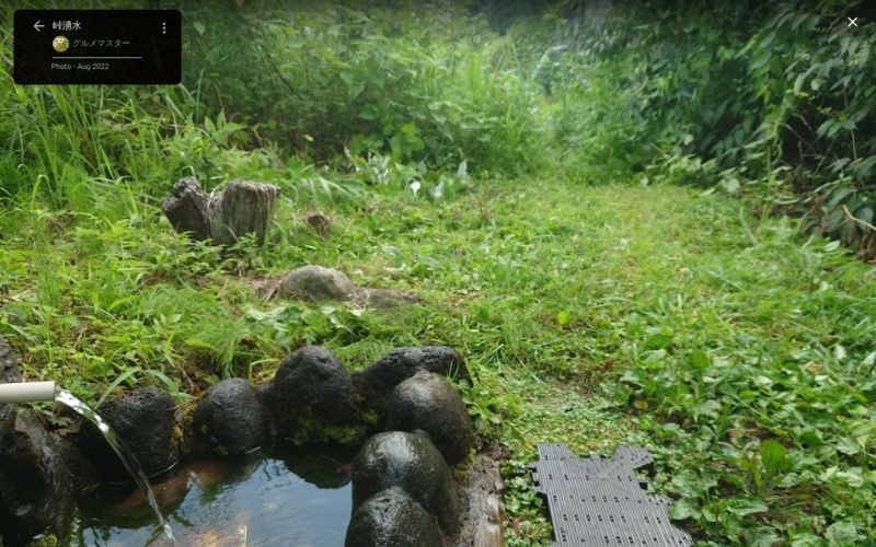 数百メートル先の畑の展望台へ続く道で、峠バス停前の道脇の少し下った所にある、地元の方々によって整備された水汲み場。