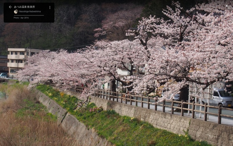 【あつみ温泉 飲泉所】(山形県の水場)鶴岡市湯温海甲 温泉街の橋の中央で風流な景色を眺め 川風に吹かれながら飲める温泉