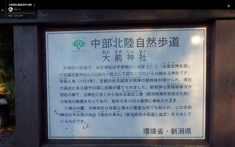 【大崎滝谷の清水】(新潟県の湧水)南魚沼市大崎 八海山の麓・大前神社の参道にある清らかな県の名水百選 [湧水の名称] 大崎滝谷の清水(おおさきたきやのしみず) [場所] 新潟県南魚沼市大崎 [言い伝え・概要] 通称「滝谷」と呼ばれる地点の随所から湧き出ている。 湧水地点近くの大前神社境内に湧水を引水した水飲み場がある。 [保全活動] 有志による清掃活動(年1~2回) [Google クチコミ] こちら 出典 環境省ホームページ お気に入りに追加※自然の湧水は煮沸して飲用されるとより安全です。※水辺は水難や危険生物に十分気を付けてください。 Click to share on X (新しいウィンドウで開きます) X このエントリーをLINEで送る (新しいウィンドウで開きます) LINEに送る Facebook で共有するにはクリックしてください (新しいウィンドウで開きます) Facebook このエントリーをはてなブックマークに追加 (新しいウィンドウで開きます) はてなブックマーク (自然)八海山 南魚沼市 投稿日: 2021年3月14日2023年1月15日 投稿者: Sumai事務局