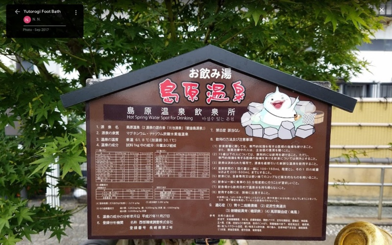 【ゆとろぎ足湯・飲泉所】(長崎県の水場)島原市堀町 城下町の中心近くで24時間入れて飲泉もできる温浴施設 [名称] ゆとろぎ足湯 [場所] 長崎県島原市堀町177 [言い伝え・概要] 平成16年11月に整備された、島原温泉の掛け流し足湯。 無料で24時間利用可能。 足湯の傍らには飲泉所、駐車場(有料)がある。 飲用適応症:胃十二指腸潰瘍、逆流性食道炎、糖尿病、痛風 ゆとろぎの湯が隣接していて、大浴場、薬湯、水風呂、サウナなど、さまざまなタイプの湯船が楽しめる。 [保全活動] [Google クチコミ] こちら お気に入りに追加※自然の湧水は煮沸して飲用されるとより安全です。※水辺は水難や危険生物に十分気を付けてください。 Click to share on X (新しいウィンドウで開きます) X このエントリーをLINEで送る (新しいウィンドウで開きます) LINEに送る Facebook で共有するにはクリックしてください (新しいウィンドウで開きます) Facebook このエントリーをはてなブックマークに追加 (新しいウィンドウで開きます) はてなブックマーク (効能別)消化器病に効く | (効能別)痛風に効く | (効能別)糖尿病に効く | (種類)温泉水 | (場所)飲泉所 | (場所)足湯 長崎県 | 島原市 | 九州 投稿日: 2023年5月16日2023年5月17日 投稿者: Sumai事務局